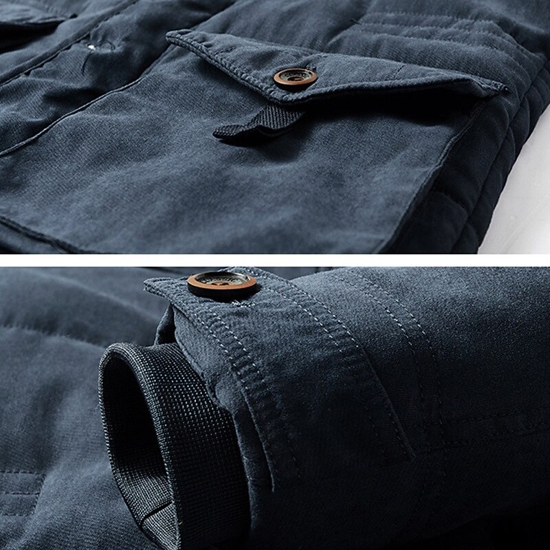 Men's Winter Jacket Fleece Jacket Casual Jacket Hiking Parka Daily Vacation Thermal Warm Pocket Fleece Fall & Winter Plain Fashion Streetwear Hooded Regular Khaki Army Green Dark Blue Coffee Jacket 11
