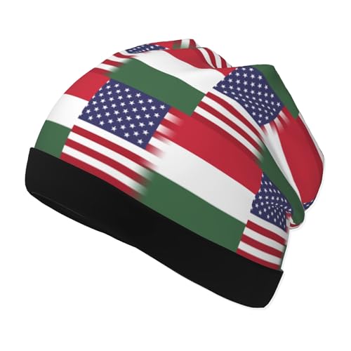 American Flag and Hungarian Flag Kids Leisure Elastic Knitted Hat Junior Large Size Knit Cap Child Beanie Black 1