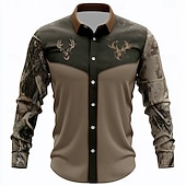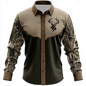 More information about Men's Reindeer Camouflage Color-blocking Shirt Button Up Shirt Long Sleeve Vintage Retro Outdoor Camping & Hiking Hunting Spring Fall Turndown 3D Print Linen Like Shirt Camouflage khaki Khaki