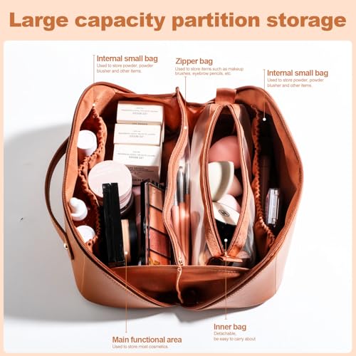 BS-MALL Travel Makeup Bag – Portable Large Capacity Toiletry Bag Perfect for Organizing Travel Size Toiletries, Flat Opening for Easy Access with 1 Makeup Brush & Zipper Bag 1