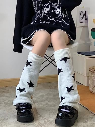 More information about Y2k Star Print Two Side Wear Knitted Leg Warmers Socks Reversible Punk Acubi Fashion Streetwear Leg Cover for Women