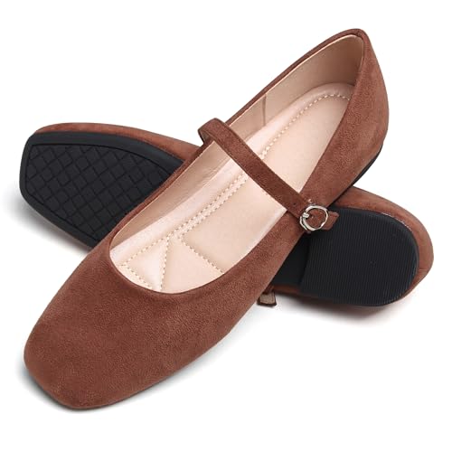 Dear Time Women's Comfortable Mary Jane Flats Soft Flats Square Toe Casual Ballet Flats with Ankle Strap 5