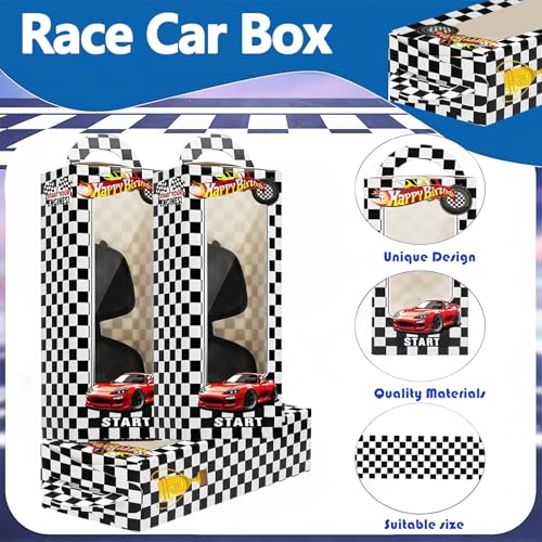 • The Package Includes:Our package includes 12pcs white black car party gift boxes and 12pcs black sunglasses that suitable for the car party favor theme; With eye-catching designs of cars, trophies, and racing flags, bright color race cars, wheels written on the front of the package, these items enrich car styles party or event.
