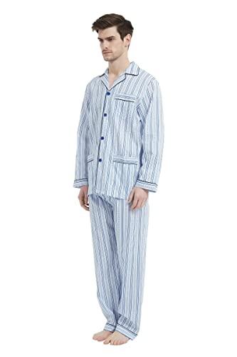 amaxer Mens 100% Cotton Pajamas Set Long Sleeve Pjs Button Fly Pants Soft Elastic Drawstring Waistband Bottoms 6