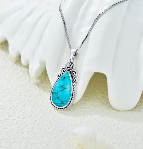More information about Genuine Turquoise Birth Flower Pendant Necklace, Sterling Silver Vintage Native Western Jewelry Birthdays Gift for Women