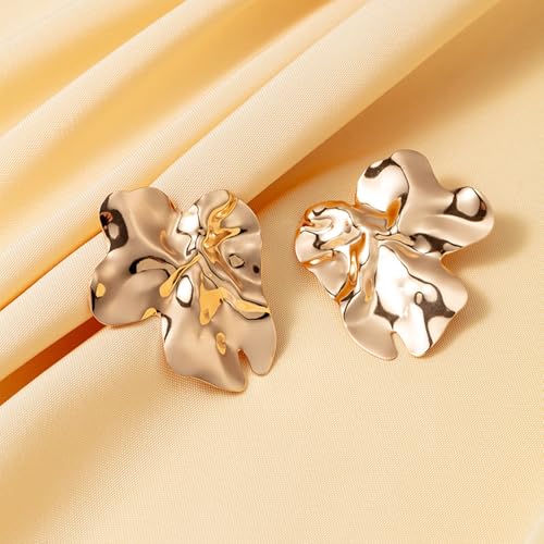 Big Earrings for Women Statement Chunky Gold Earrings for Women Trendy Hammered Large Silver Earring Irregular Geometric Stud Earring Chunky Jewelry 3