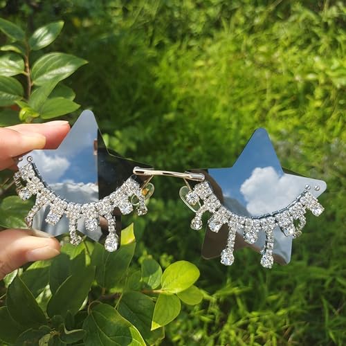 • Rimless star sunglasses, super cute one piece sunglasses for women and men, fashionable accessories, frameless irregular eyeglasses, fashion trendy sunglasses.