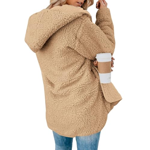 Gumipy Fleece Jacket Women Oversized Fuzzy Sherpa Jacket Warm Hooded Winter Coats Trendy Open Front Chunky Cardigan Outerwear 4