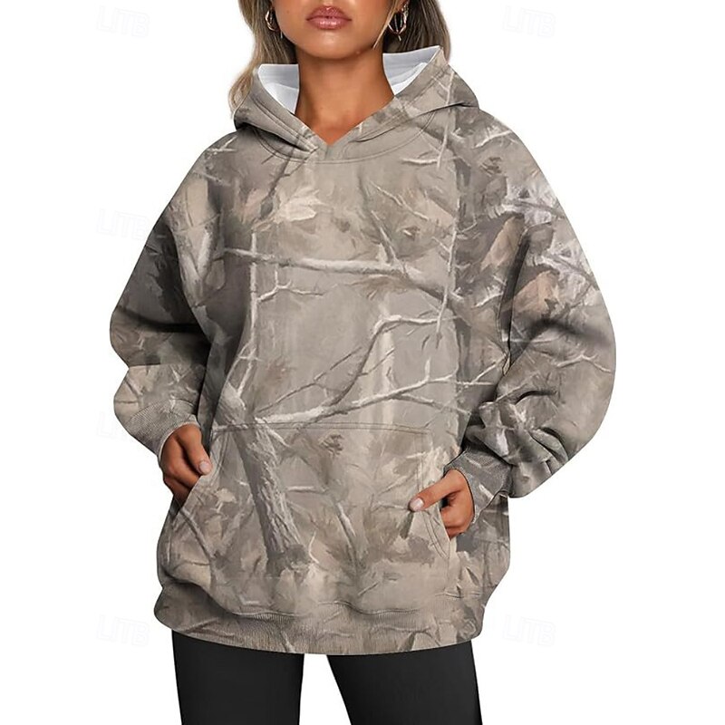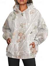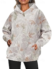 More information about Women's Pullover Hoodie Sweatshirt Floral Streetwear Casual Long Sleeve Hooded Regular Tops Street Holiday Going out Pocket Print White Orange Green Khaki Light Grey Fall Winter