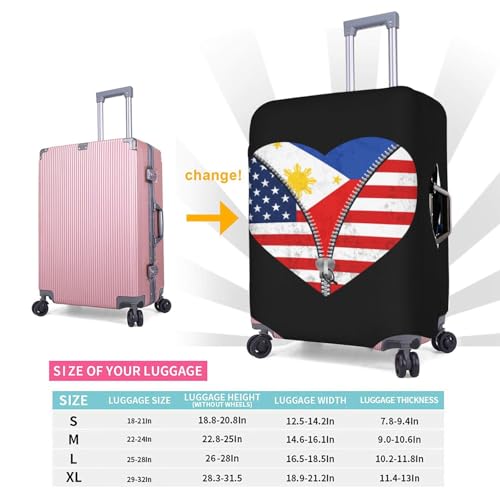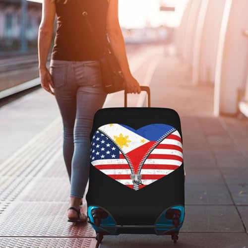 Travel Luggage Cover Heart America Flag And Philippines Flag Fashion Washable Baggage Suitcase Protector Fit For Luggage Medium 6