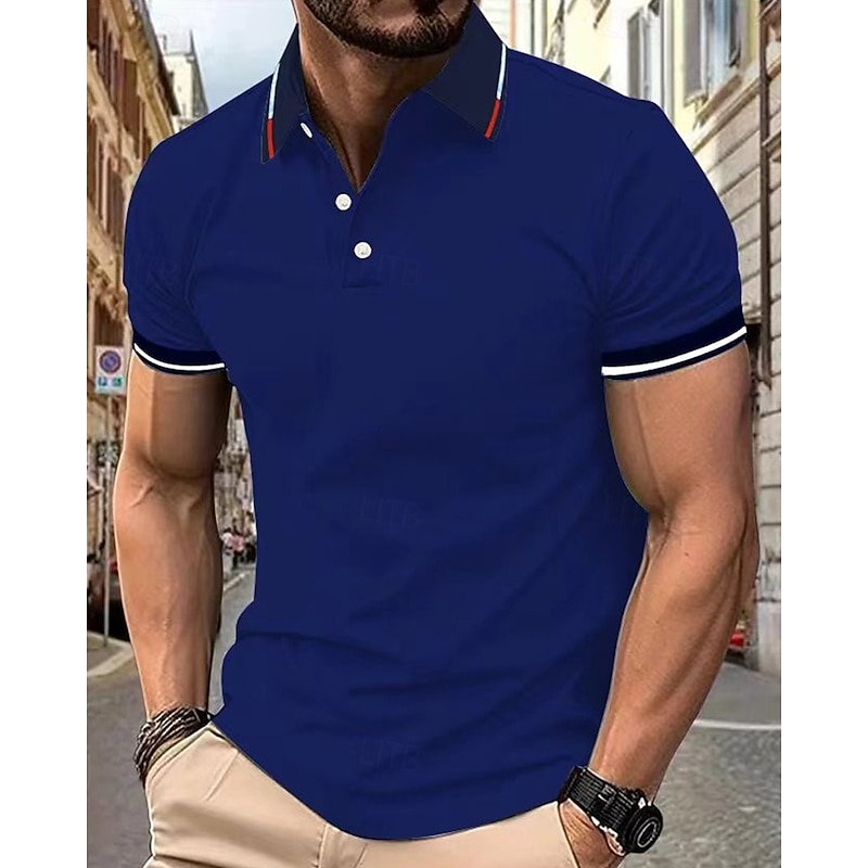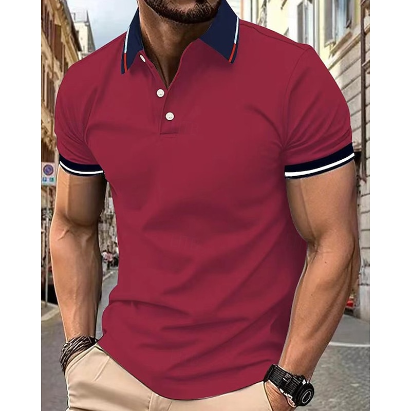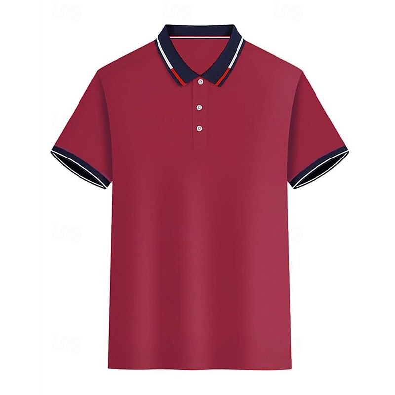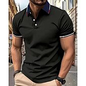 More information about Men's Golf Shirt Golf Polos Shirts Casual Sports Lapel Short Sleeve Basic Modern Color Block Patchwork Buttons Summer Regular Fit Lake blue Wine Denim Blue Black White Pink Golf Shirt