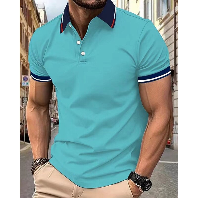 Men's Golf Shirt Golf Polos Shirts Casual Sports Lapel Short Sleeve Basic Modern Color Block Patchwork Buttons Summer Regular Fit Lake blue Wine Denim Blue Black White Pink Golf Shirt 7