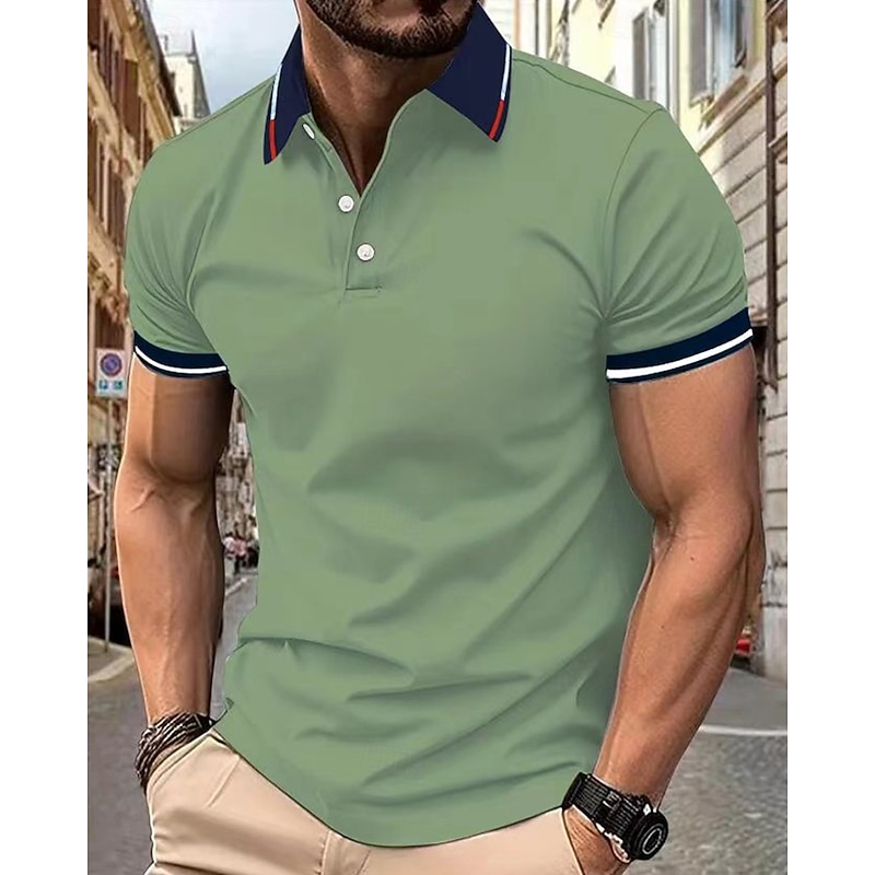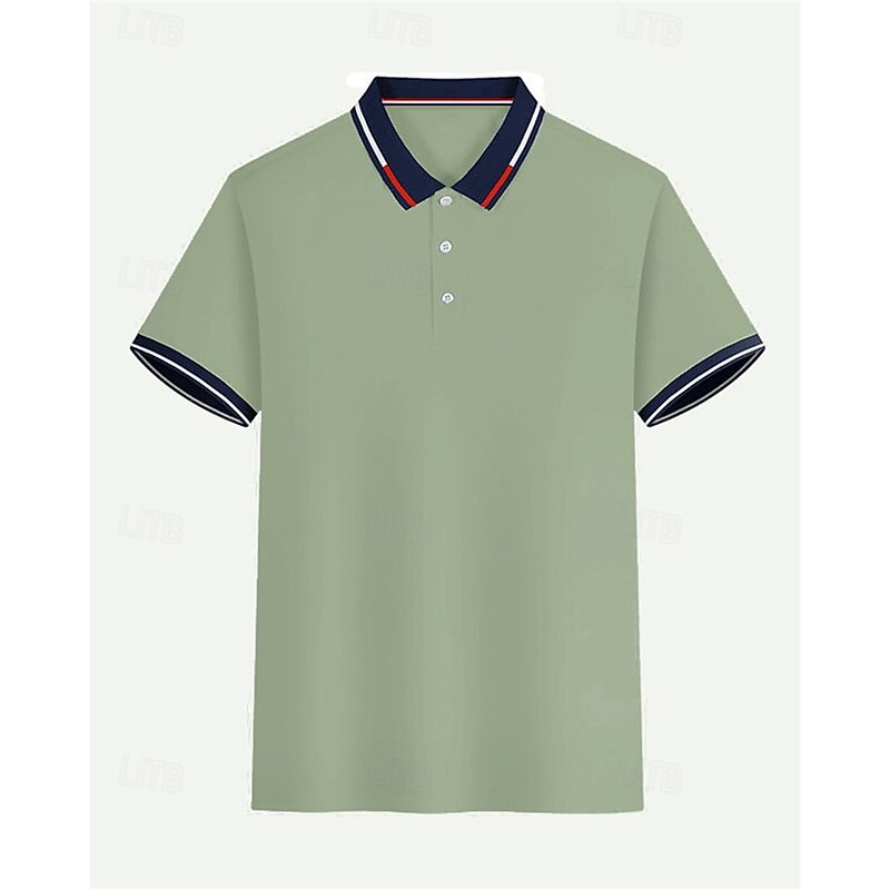 Men's Golf Shirt Golf Polos Shirts Casual Sports Lapel Short Sleeve Basic Modern Color Block Patchwork Buttons Summer Regular Fit Lake blue Wine Denim Blue Black White Pink Golf Shirt 20