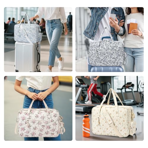 HOT ! Quilted Duffle Bag for Women, Quilted Weekender Bag, Quilted Travel Bag, Large Floral Duffle Bags with Adjustable Straps