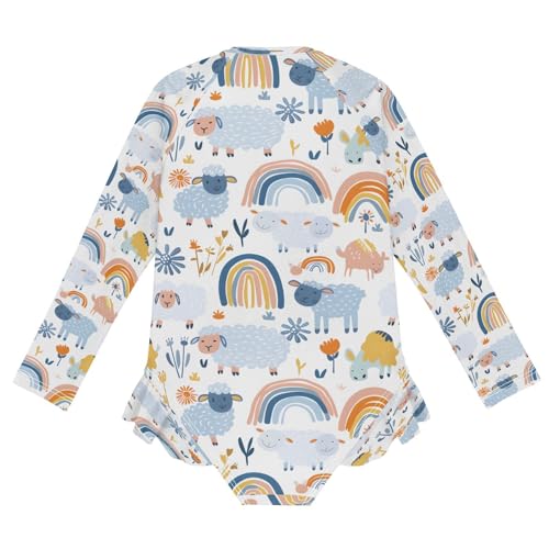 Rainbow Cute Sheep Girls Long Sleeve Swimsuits One Piece Zipper Bathing Suit UPF 50+ Rashguard Swimwear 1