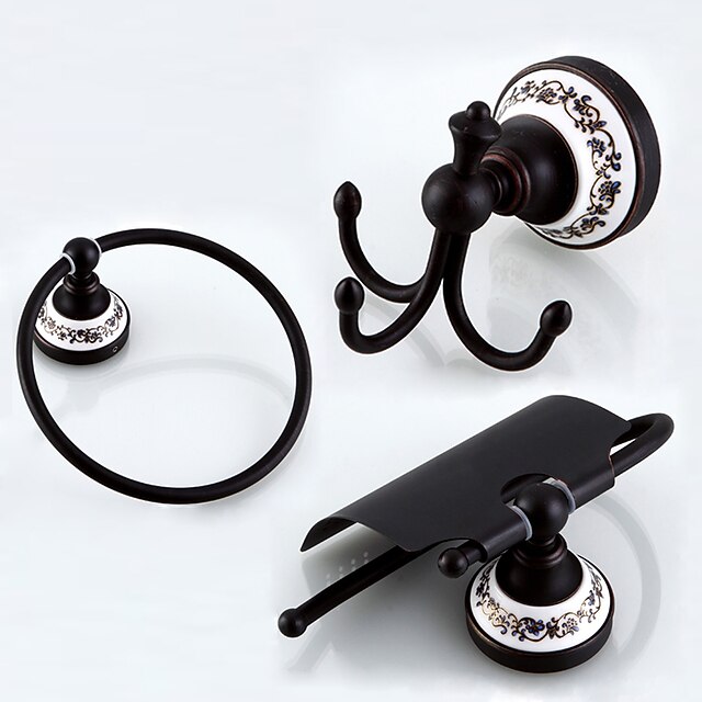 HOT ! Bathroom Accessory Set Antique Brass 3pcs Include Toilet Paper Holders Robe Hook and Tower Ring Oil-rubbed Bronze