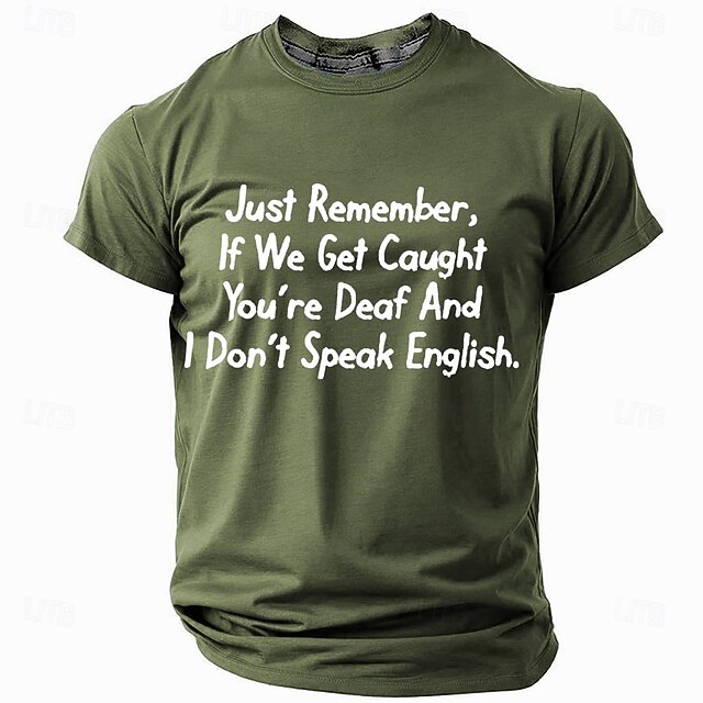 Mens Funny Short Sleeve Graphic T-Shirt - 'If We Get Caught You're Deaf, I Don't Speak English' Sarcastic Tee 9