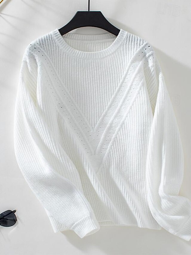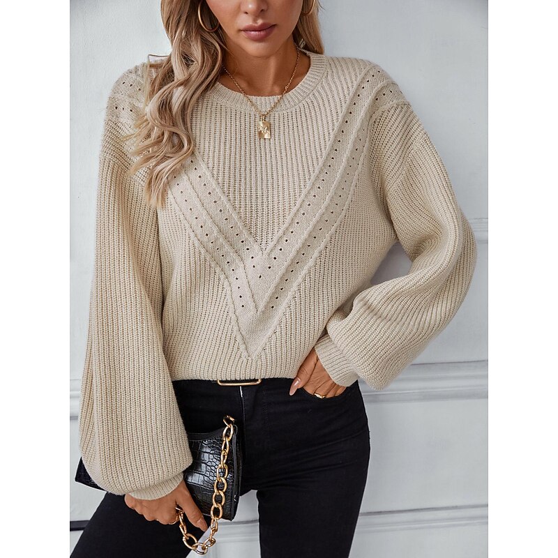 More information about Women's Sweater Stylish Solid Color Ribbed Crew Neck Knitted Lantern Sleeve Long Sleeve Long Tops Knit Work Daily White Beige Fall Winter