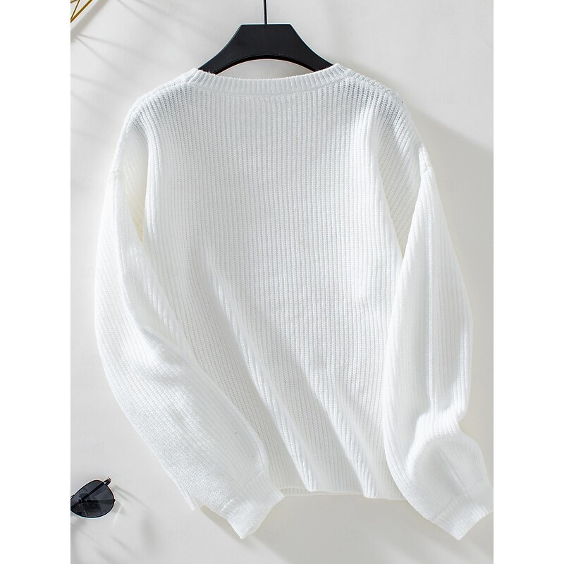 Women's Sweater Stylish Solid Color Ribbed Crew Neck Knitted Lantern Sleeve Long Sleeve Long Tops Knit Work Daily White Beige Fall Winter 10