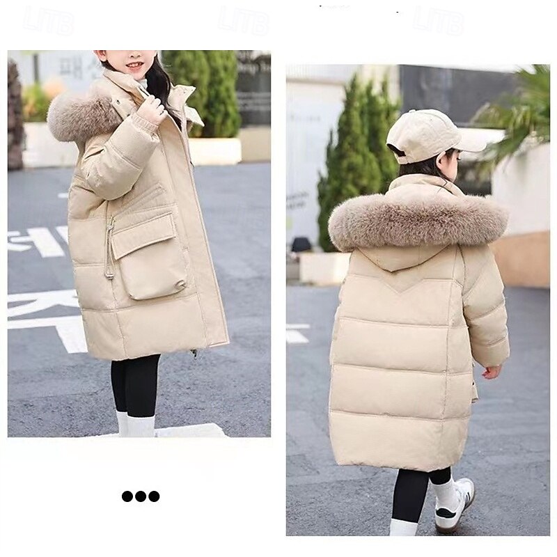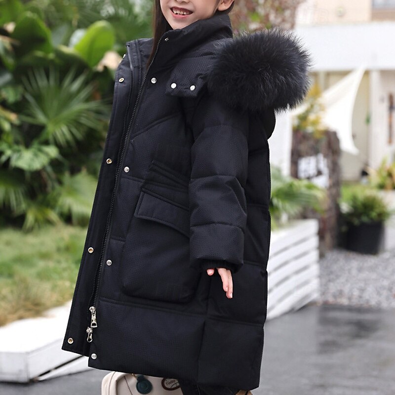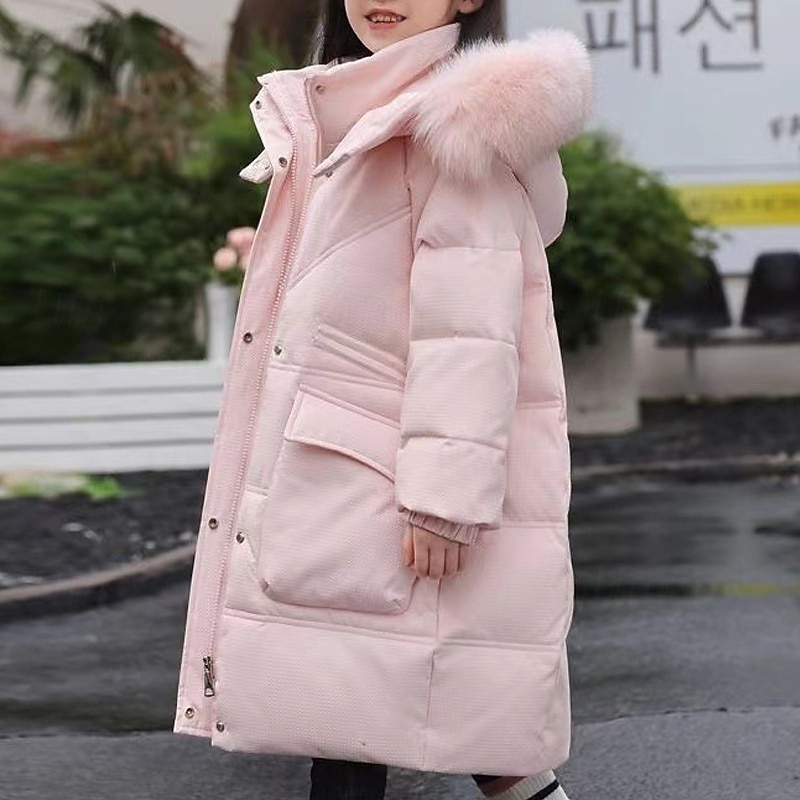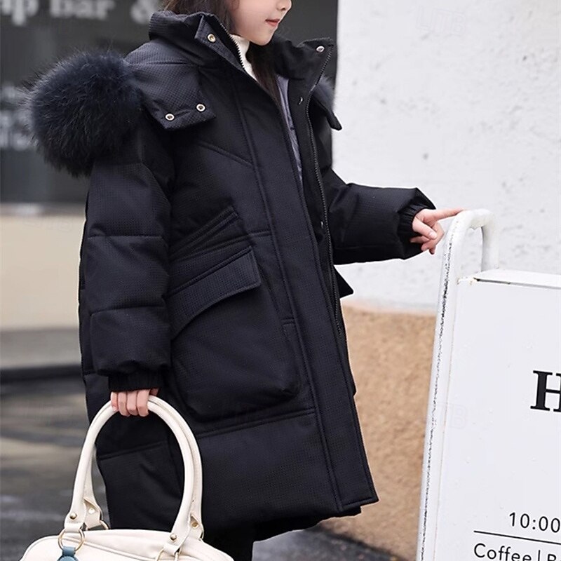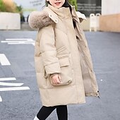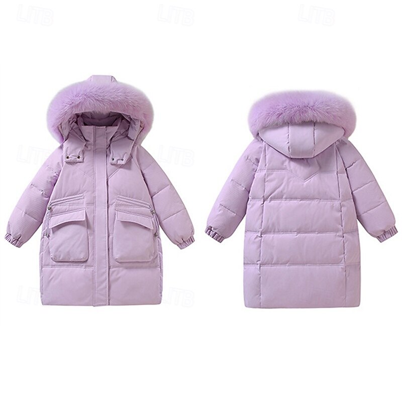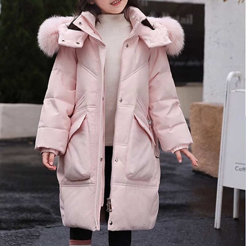 More information about Kids Girls' Down Coat Puffer Jacket Solid Color Fashion Pocket School Coat Outerwear 4-12 Years Fall Black Pink Purple