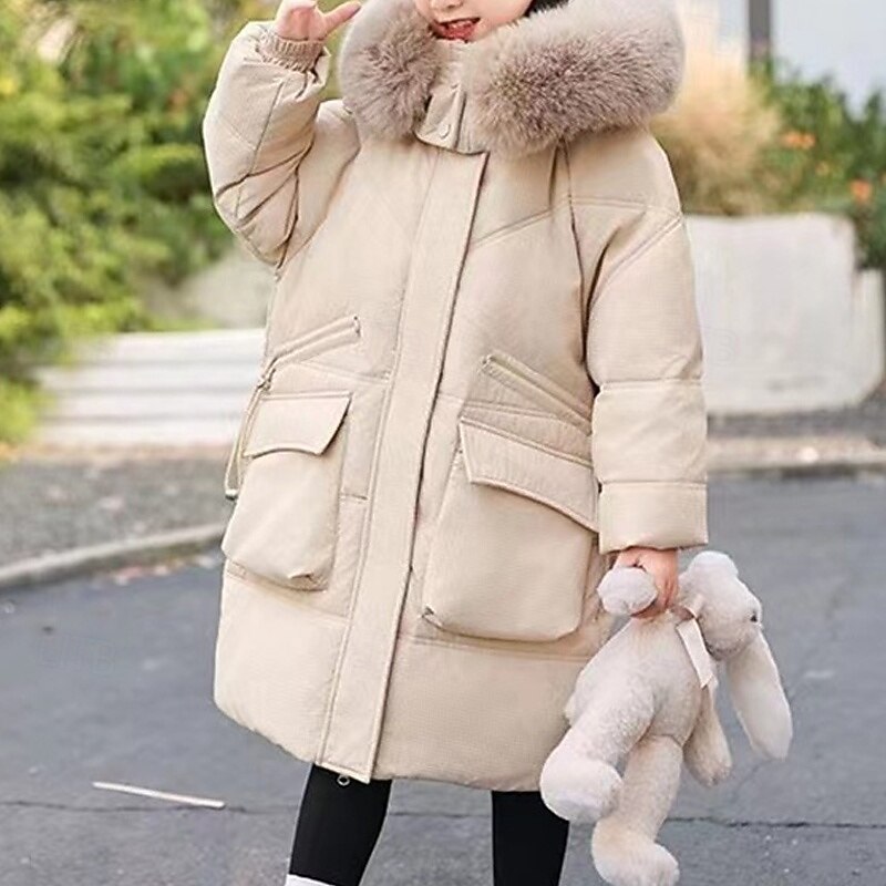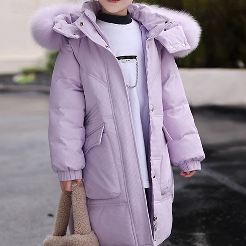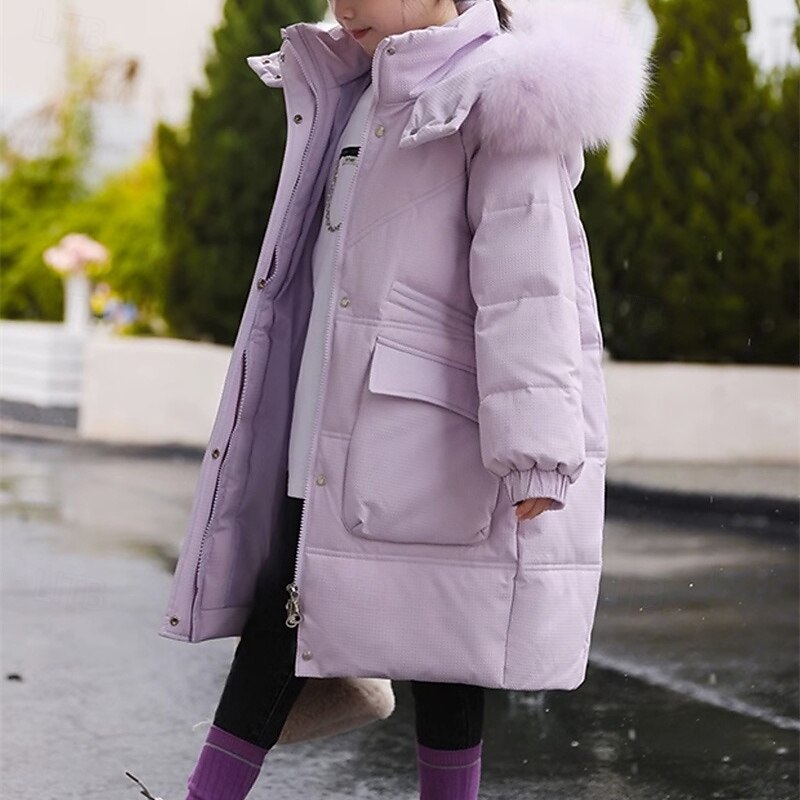 Kids Girls' Down Coat Puffer Jacket Solid Color Fashion Pocket School Coat Outerwear 4-12 Years Fall Black Pink Purple 22