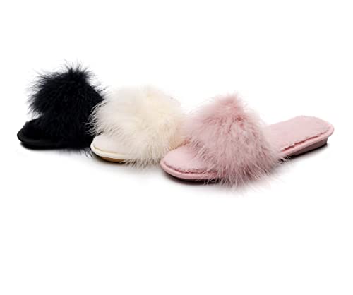 More information about FAYUEKEY Faux Fur Slippers For Women Bride Wedding Open Toe Slippers House Outdoor Fuzzy Shoes