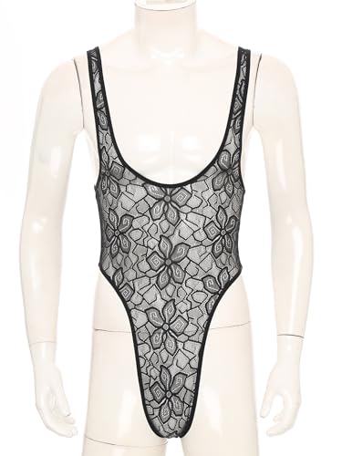 Men's Sheer Bodysuits Sissy Lingerie Leotard High Cut Singlet See Through Crossdress Nightwear 1