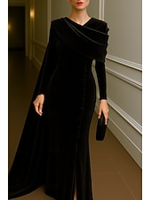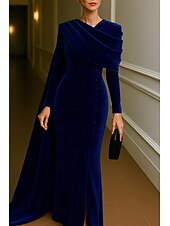 $154.99 - Burgundy Blue Column Evening Gown Elegant Dress Formal Wedding Floor Length Long Sleeve Stand Collar Velvet with Pleats 2025 2025. Shop for cheap Ball Gown Evening Dresses online? Buy at lightinthebox.com on sale today!