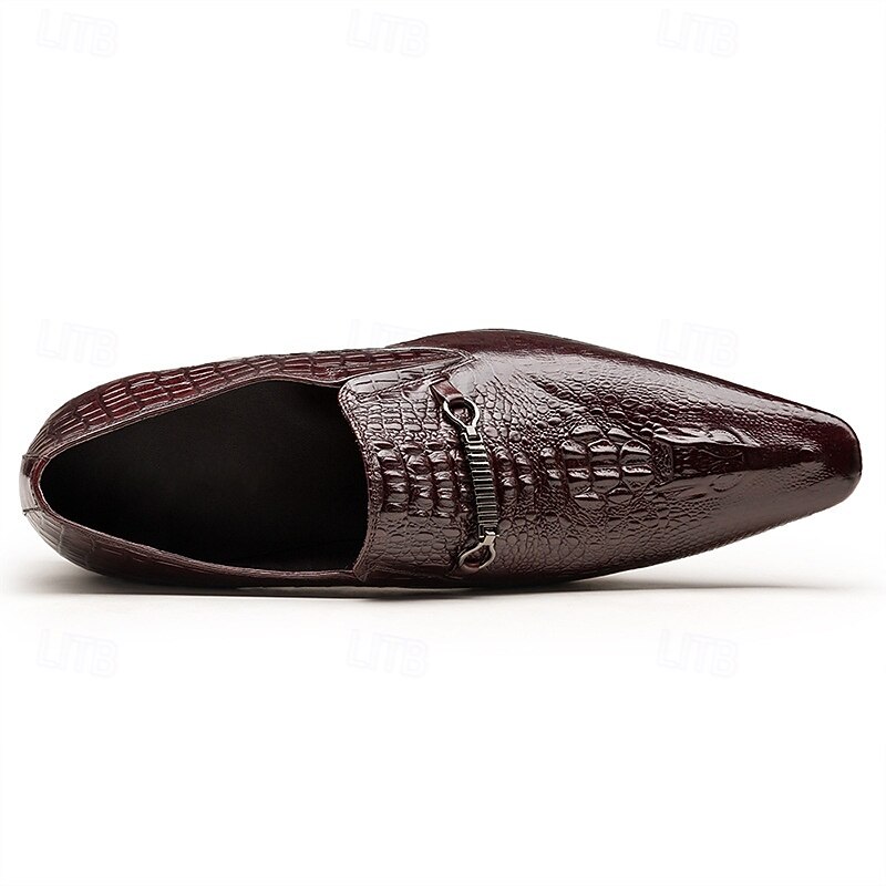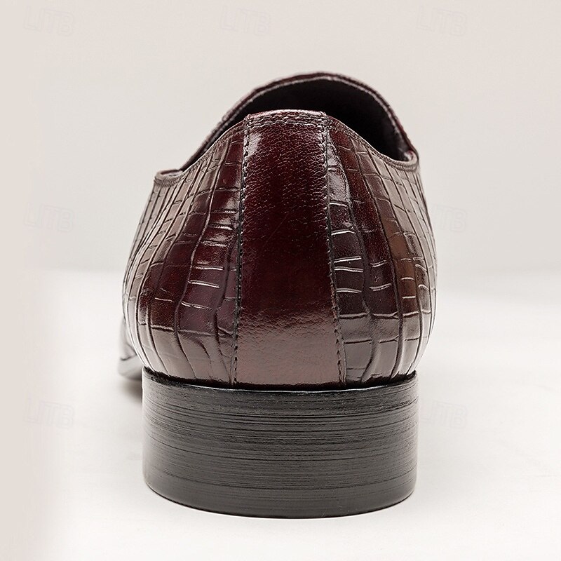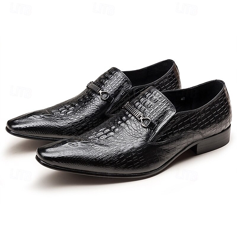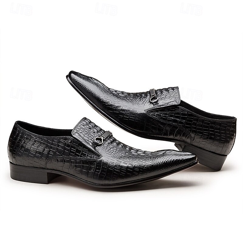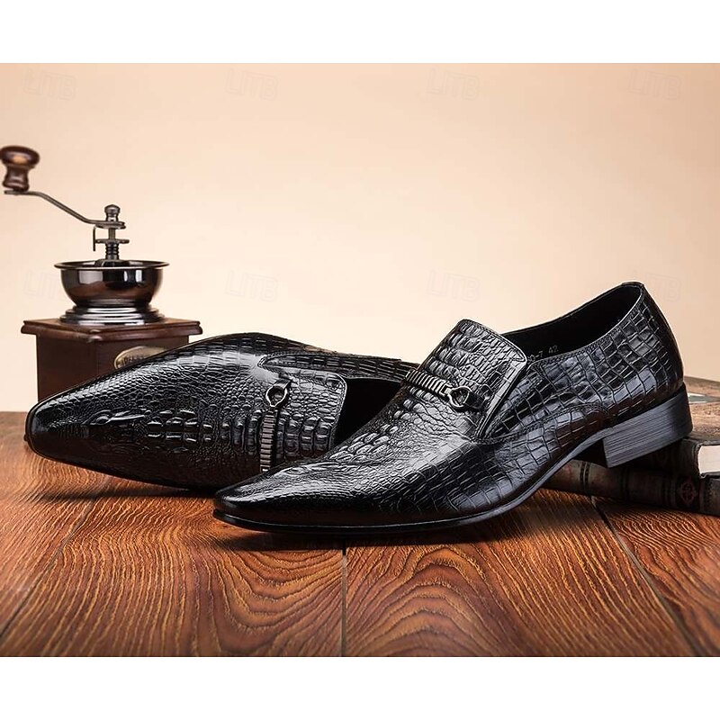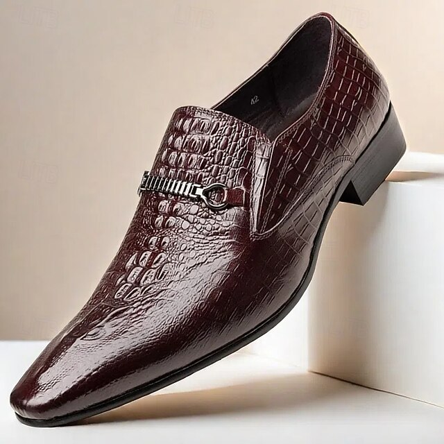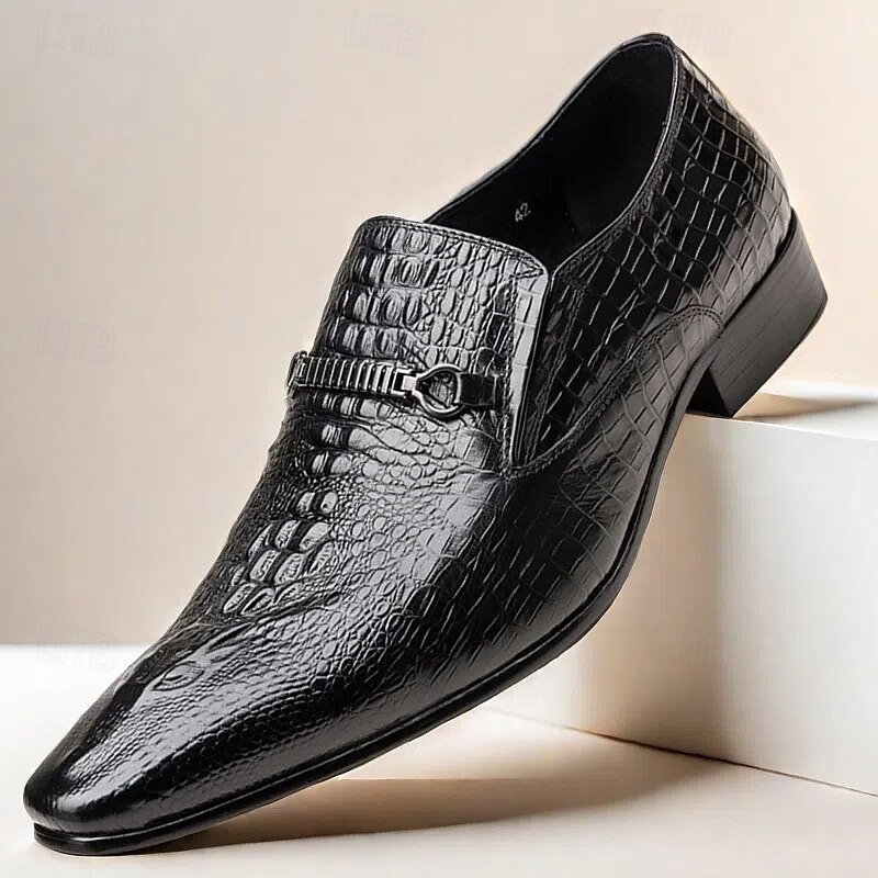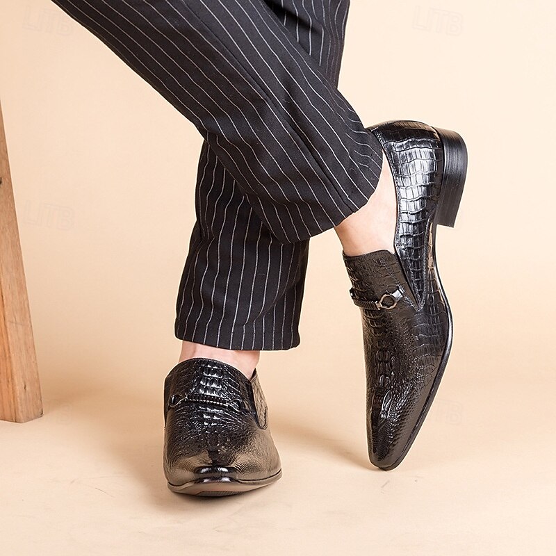 More information about Men's Crocodile Pattern Faux Leather Loafers – Elegant Slip-On Shoes with Metal Buckle for Business and Formal Events