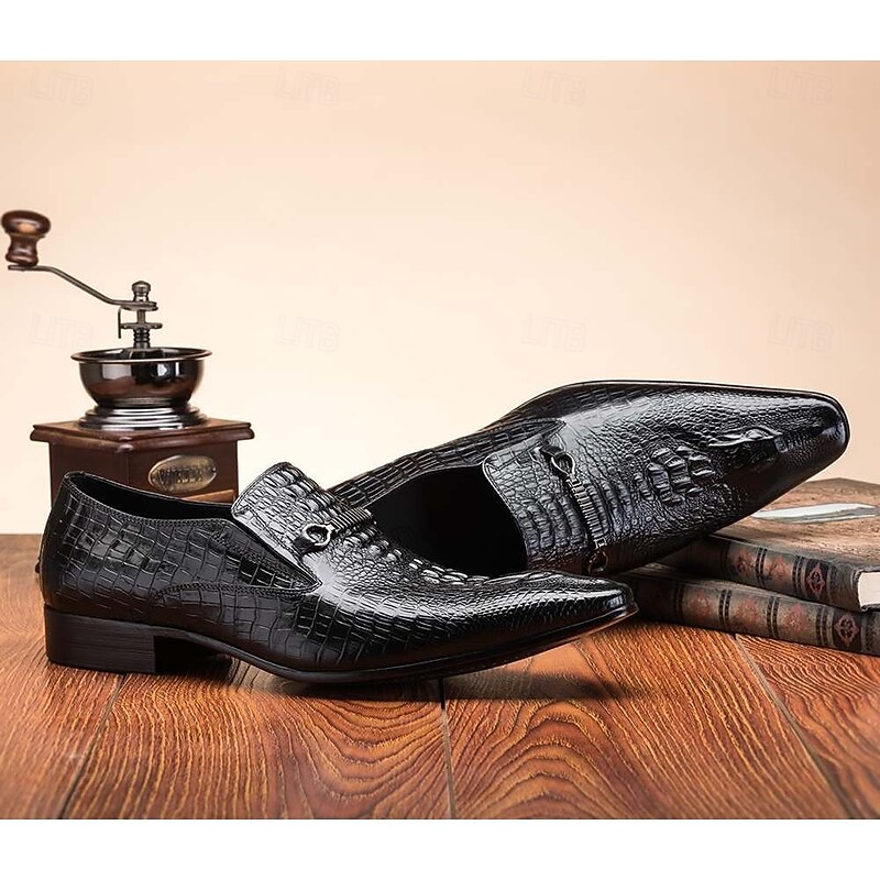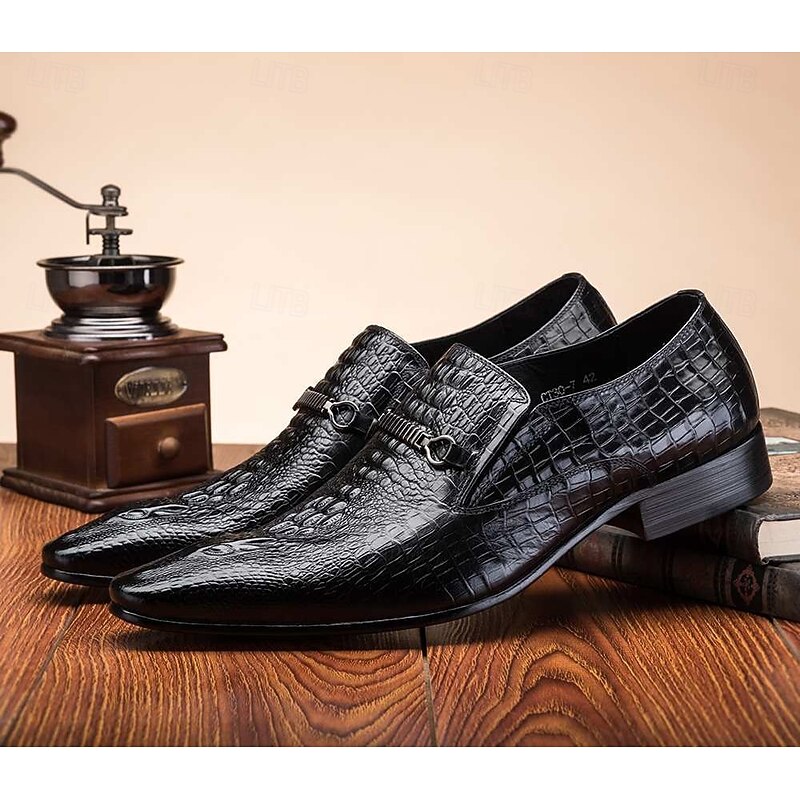 Men's Crocodile Pattern Faux Leather Loafers – Elegant Slip-On Shoes with Metal Buckle for Business and Formal Events 1