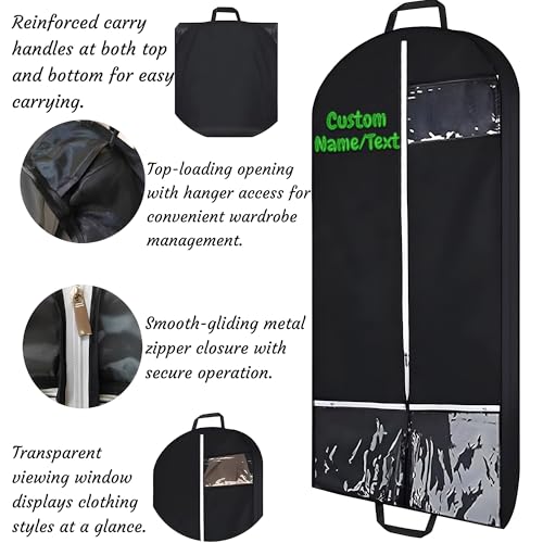 Personalized Garment Bags Prom Dress Bag for Teens, Embroidered Name/Text Garment Protector Cover for Wedding Dress, Suit, Dance Costumes, Coat, Brides Maids Dress Uniform Cover 3