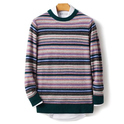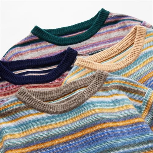 More information about Men's 100Percent Merino Wool Pullover Sweater Retro Color Stripe O-Neck Knitwear Thick Long Sleeve Cashmere Jumper