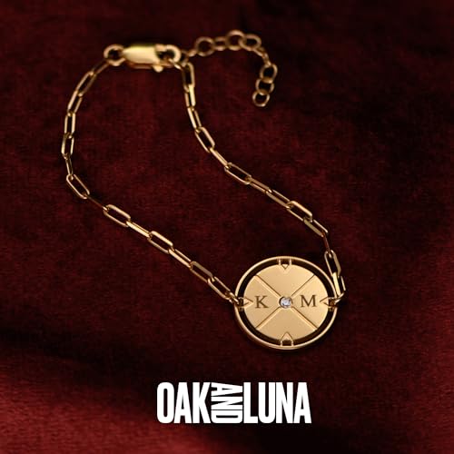 HOT ! OAK & LUNA - Personalized Engraved Compass Bracelet - Custom Inscription - Dainty Gift for Her, Women - Jewelry for Her, Women, Mom - Diamond Option