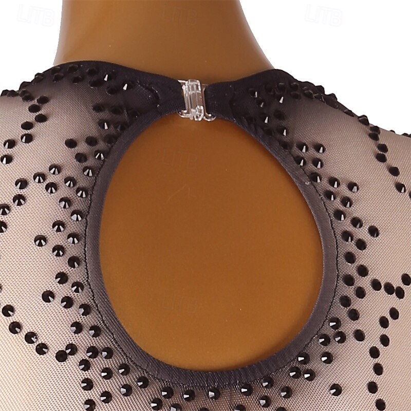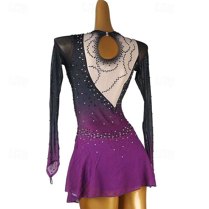 More information about Figure Skating Dress Women's Girls' Ice Skating Dress Purple Patchwork Open Back Mesh Spandex High Elasticity Training Practice Professional Skating Wear Classic Crystal / Rhinestone Long Sleeve Ice