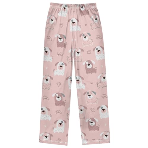 HOT ! Boy's Pants Hand Drawn Cute Pink White Dog Jogger Pants Elastic Waist Long Bottoms Trousers with Pockets 6-14 Years