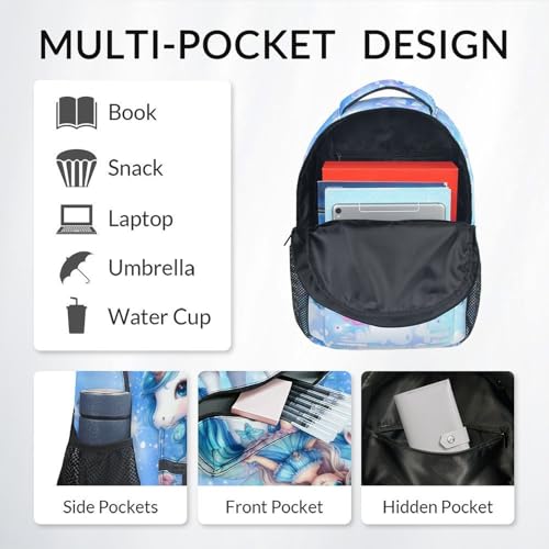 • Backpack for School: Crafted from premium polyester fabric, this unicorn backpack for girls offers durable, lightweight, and water-resistant performance. Easy to clean, it's ideal for school, travel, and daily adventures