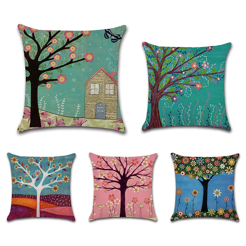 Set of 5 Throw Pillow Case Pastrol Oil Painting Style Cushion Cover Home Sofa Faux Linen Cushion for Sofa Couch Bed Chair