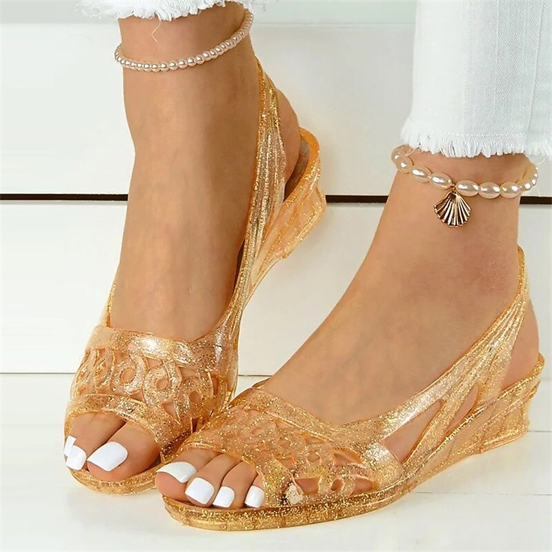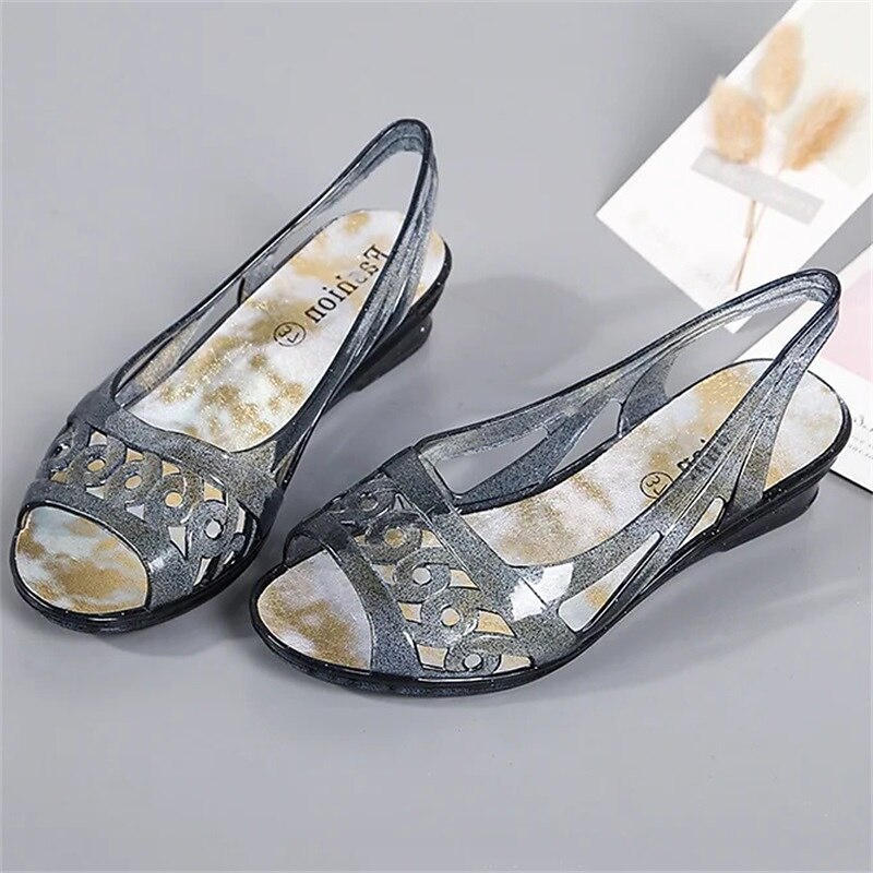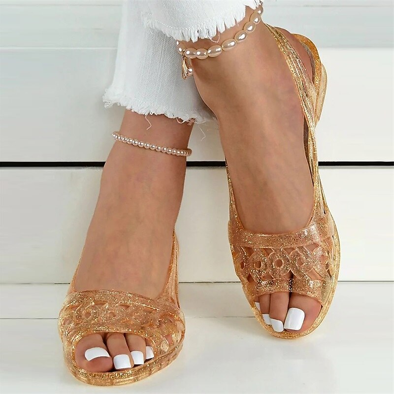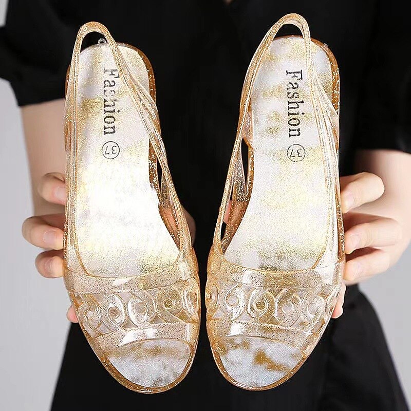 : Crafted from high-quality, flexible PVC material, these jelly sandals offer durability and a comfortable fit for the summer season, providing a stylish and inviting feel.