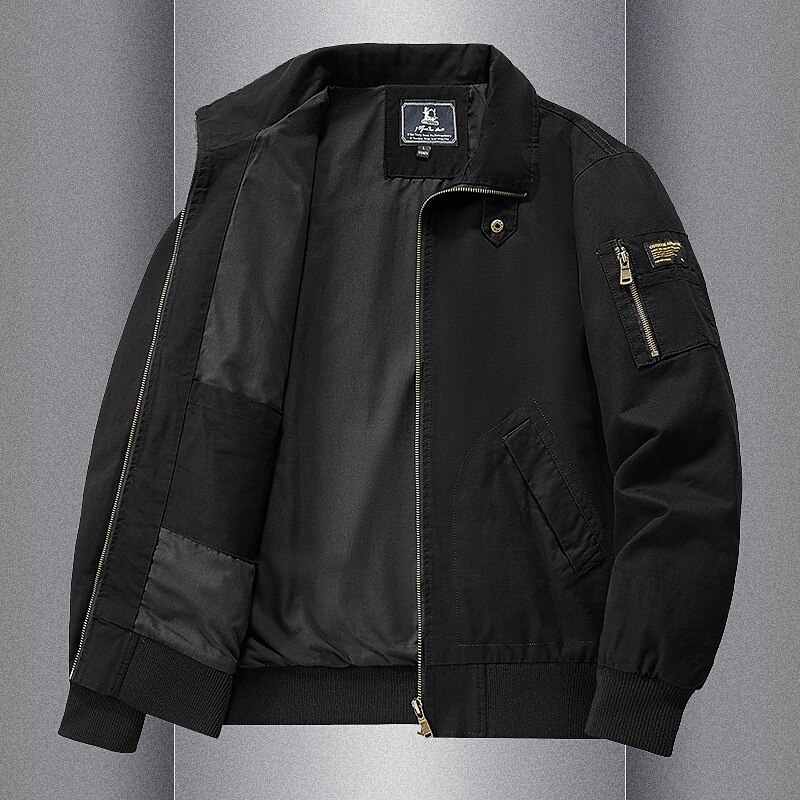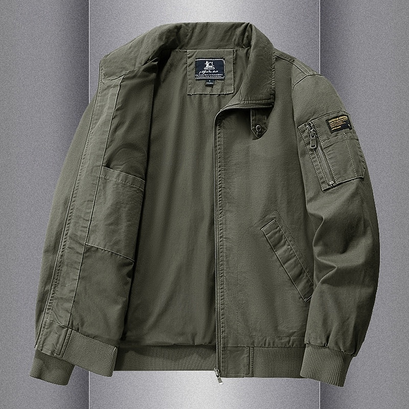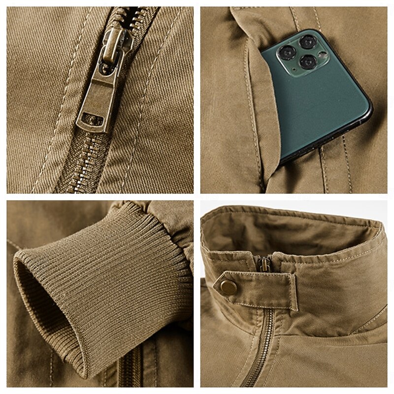 More information about 100% Cotton Men's Bomber Jacket Tactical Jacket Motorcycle Jacket Outdoor Casual Soft Multiple Pockets Spring & Fall Plain National Flag Casual Comfortable Stand Collar Black White Khaki Green