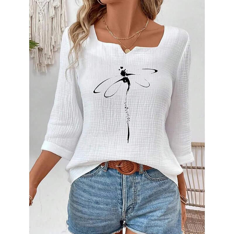 More information about Women's Blouse Animal Elegant 3/4 Length Sleeve Notched Neck Regular Tops Daily Linen Like Going out Print White Summer