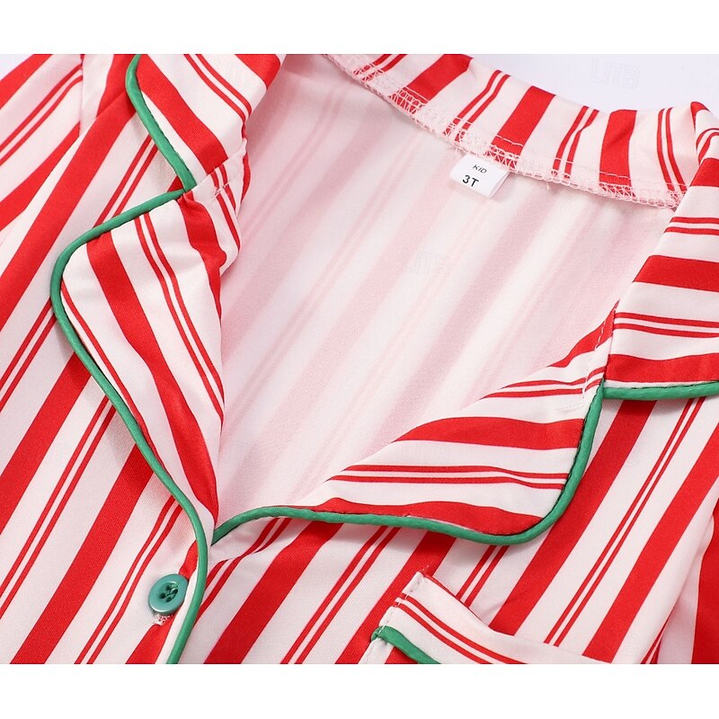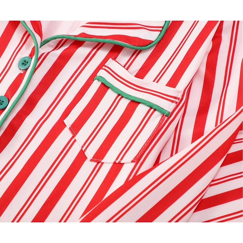 More information about Family Christmas Pajamas Nightwear Men's Women's Boys' Girls' Family Matching Outfits Sweet Stripes Pattern Adults Kid's Christmas New Year Christmas Eve Vacation Home Wear Top Pants