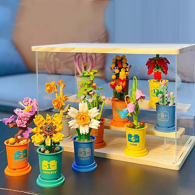 HOT ! Meat building block flower blind box simulation flower potted tabletop decoration assembly boutique toy gift prize