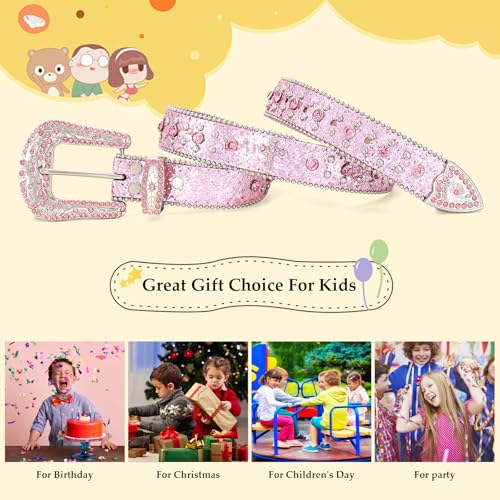 Kids Rhinestone Belt for Girls Boys Western Cowboy Cowgirl Belts Diamond Studded Bling Leather Belt for Kids 4