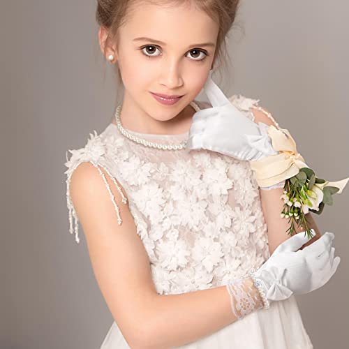 • Formal Communion Gloves: our fancy gloves are made of elastic fabric, decorated with artificial pearls and bows, with a smooth and silky texture, reliable and safe, with elasticity and flexibility, offering you a reassuring wear experience