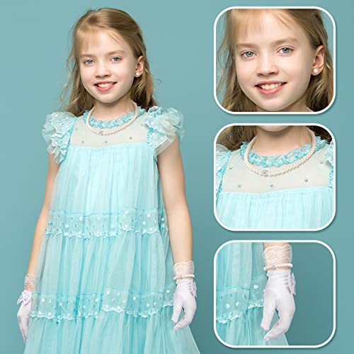 Geyoga 4 Pcs Pearl Necklace Set for Little Girls Toddler Girls Tea Party Jewelry White Pearl Earrings Bracelet Sets First Communion Gloves Kit for Kids Age 4-12 Years 6