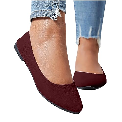 Flat Shoes for Women Comfortable Slip On Walking Ballerina Shoe Ladies Pointed-Toe Ballet Flats Suede Shallow Single-Shoes 5