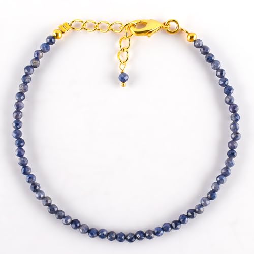 • Details - Gemstone: Blue Sapphire | Jewelry Style: Fashion Statement Jewelry | Stone Cut : Micro-Faceted | Stone Shape : Rounds | Metal : 14k Gold plated Brass | Stone : Natural | Jewelry Length : 7+1 inch | Closure by a Strong Lobster Lock and Extender Chain .