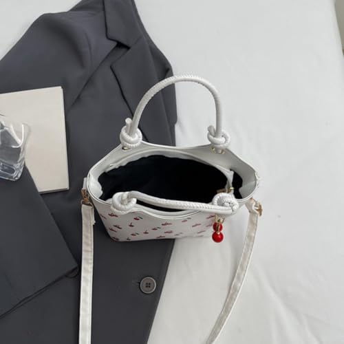 Small Chic Cherry Shoulder Bag Purse for Women PU Leather Pattern Top-handle Handbag Satchel Bucket Fashion Girls Pri 4