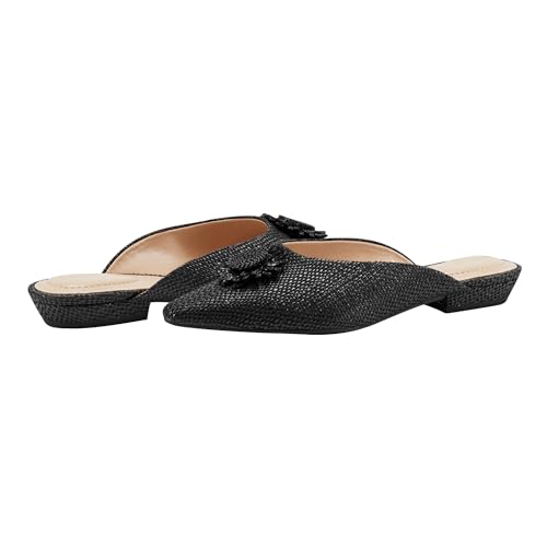 • The Bandolino Shay flat mules are sure to turn heads! These mules feature a unique sunflower detail and raffia upper. The perfect choice to add style to any outfit!