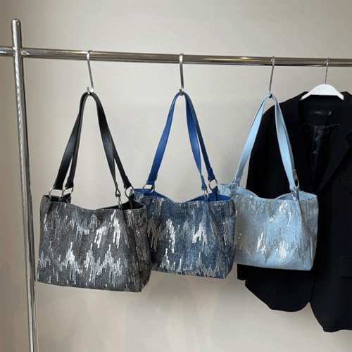 HOT ! Sequin Purse Sparkly Denim Sequin Purse Tote Bags Shoulder Bag with Zipper Trendy Ideal Gifts for Women Girls